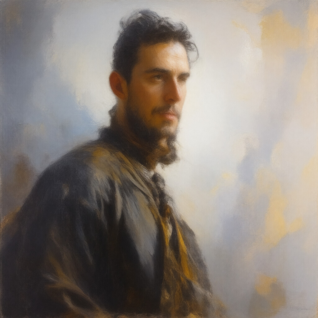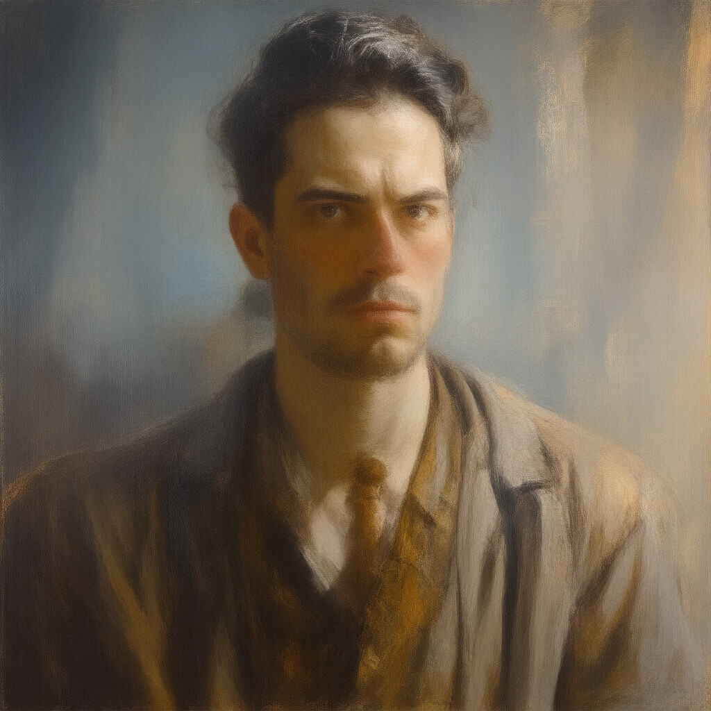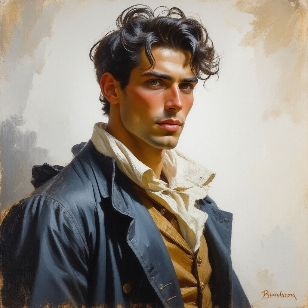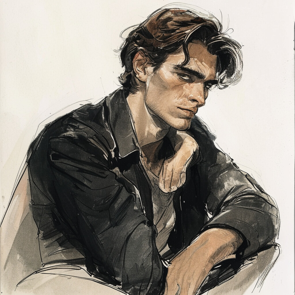 “Male character illustration by Gaston Bussiere.”